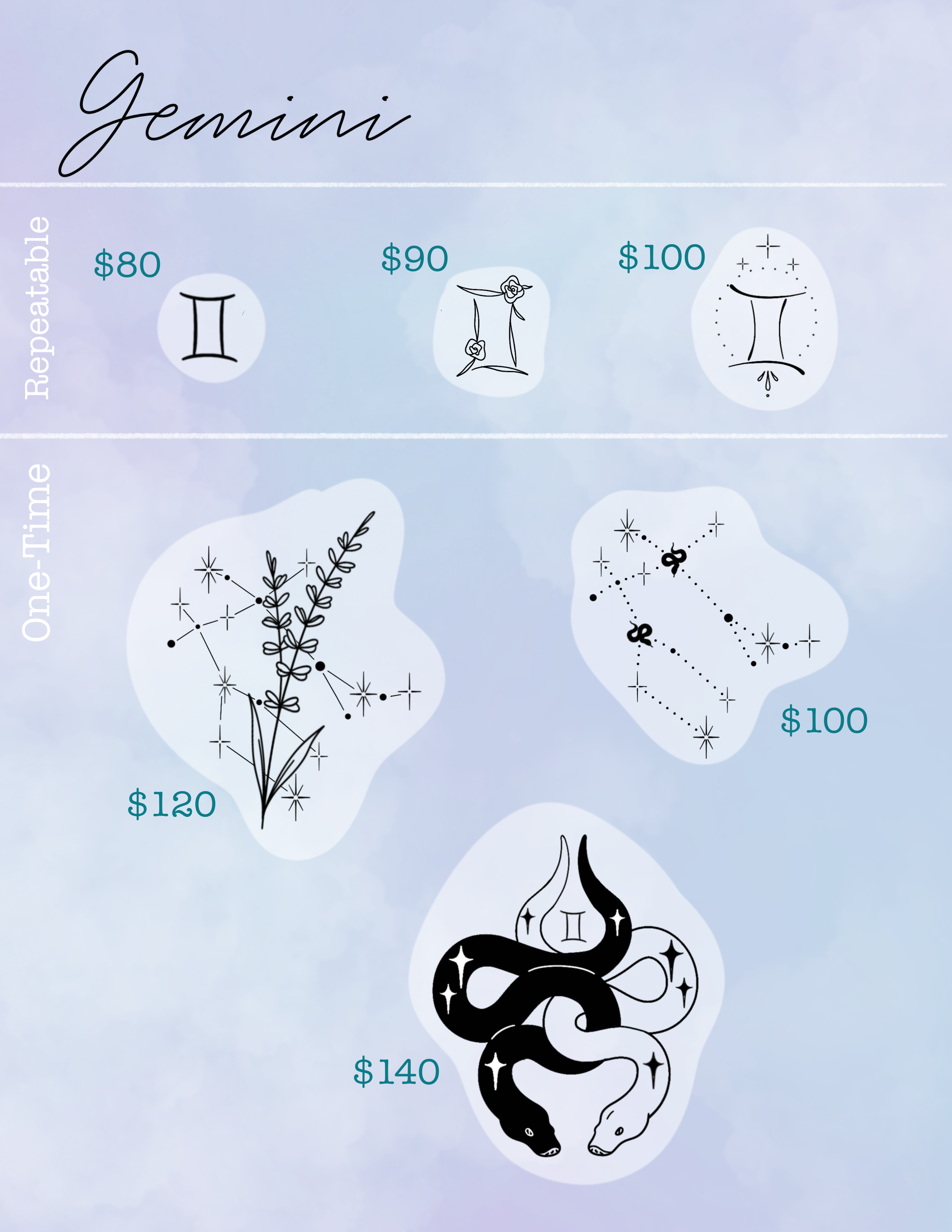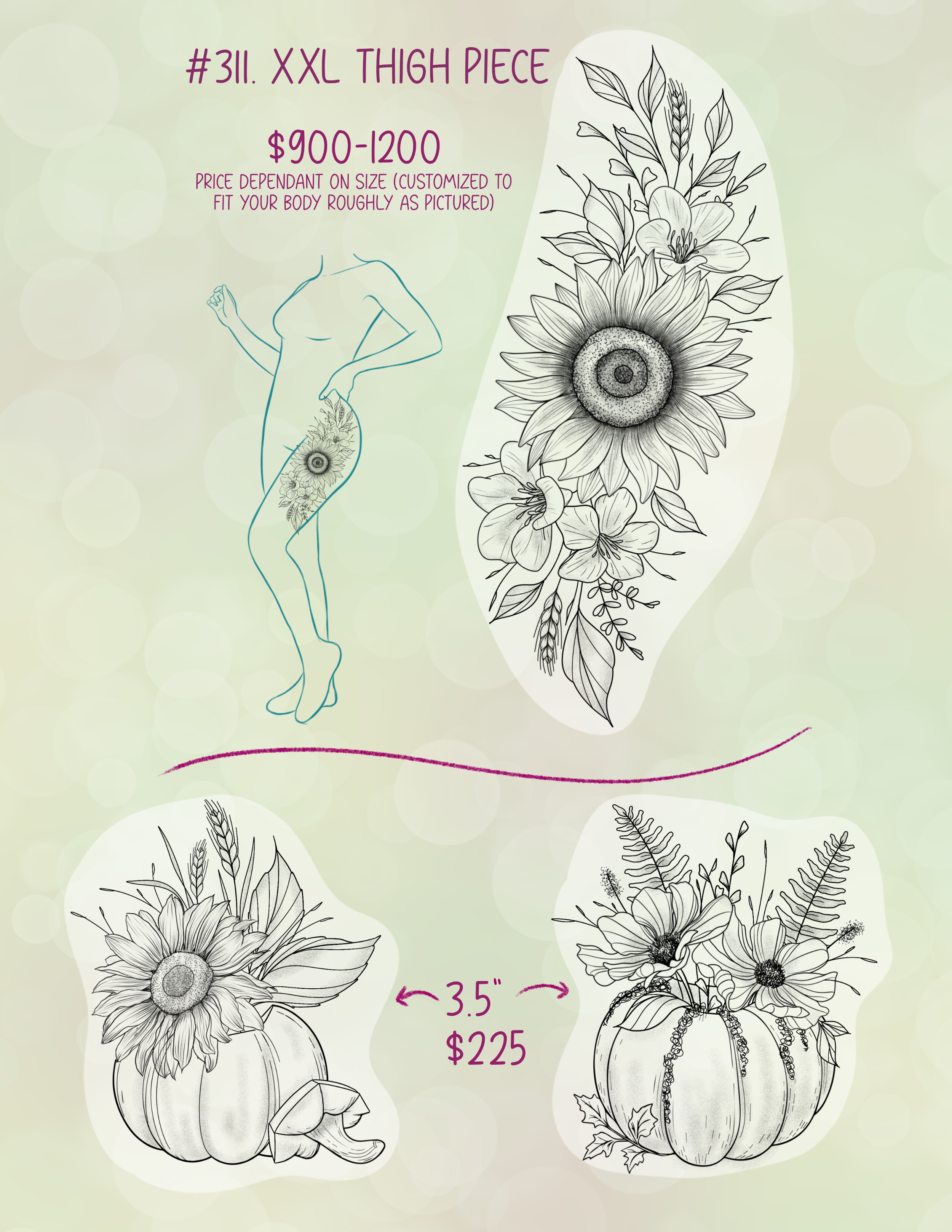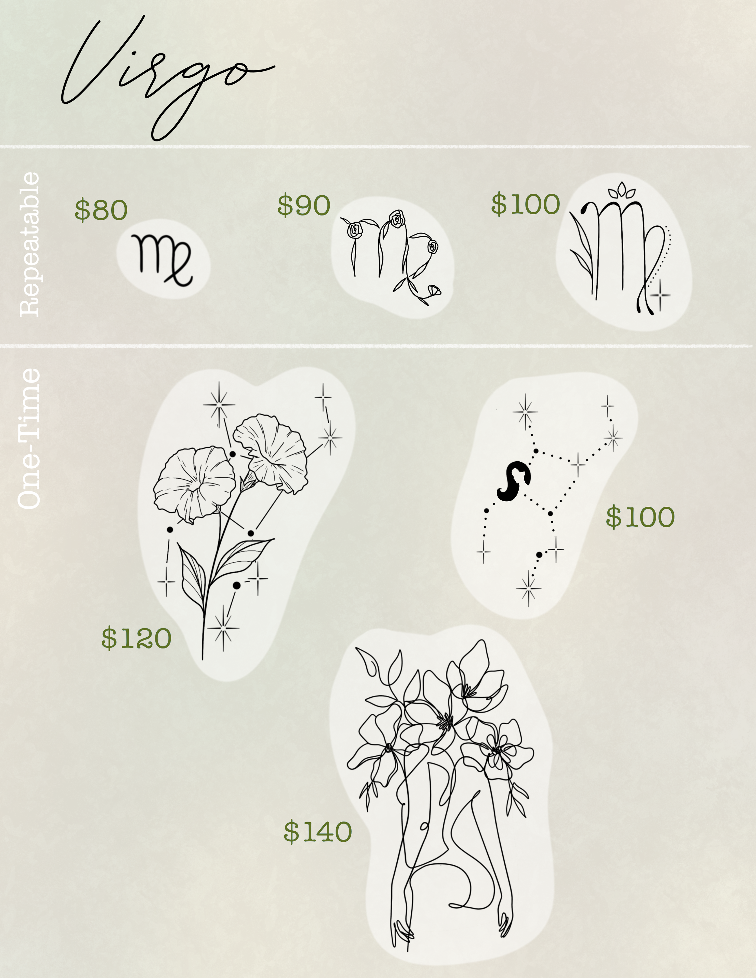 TO BOOK: email or Instagram DM a screenshot of what you want and where you want it. A non-refundable deposit of $50-200 is required.