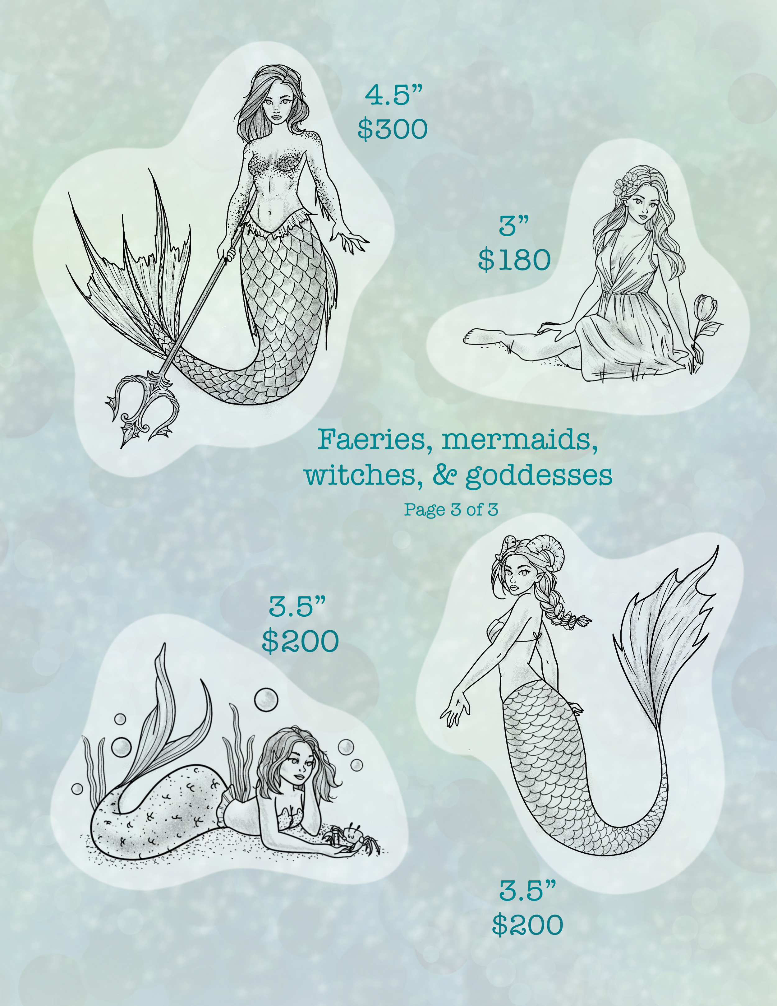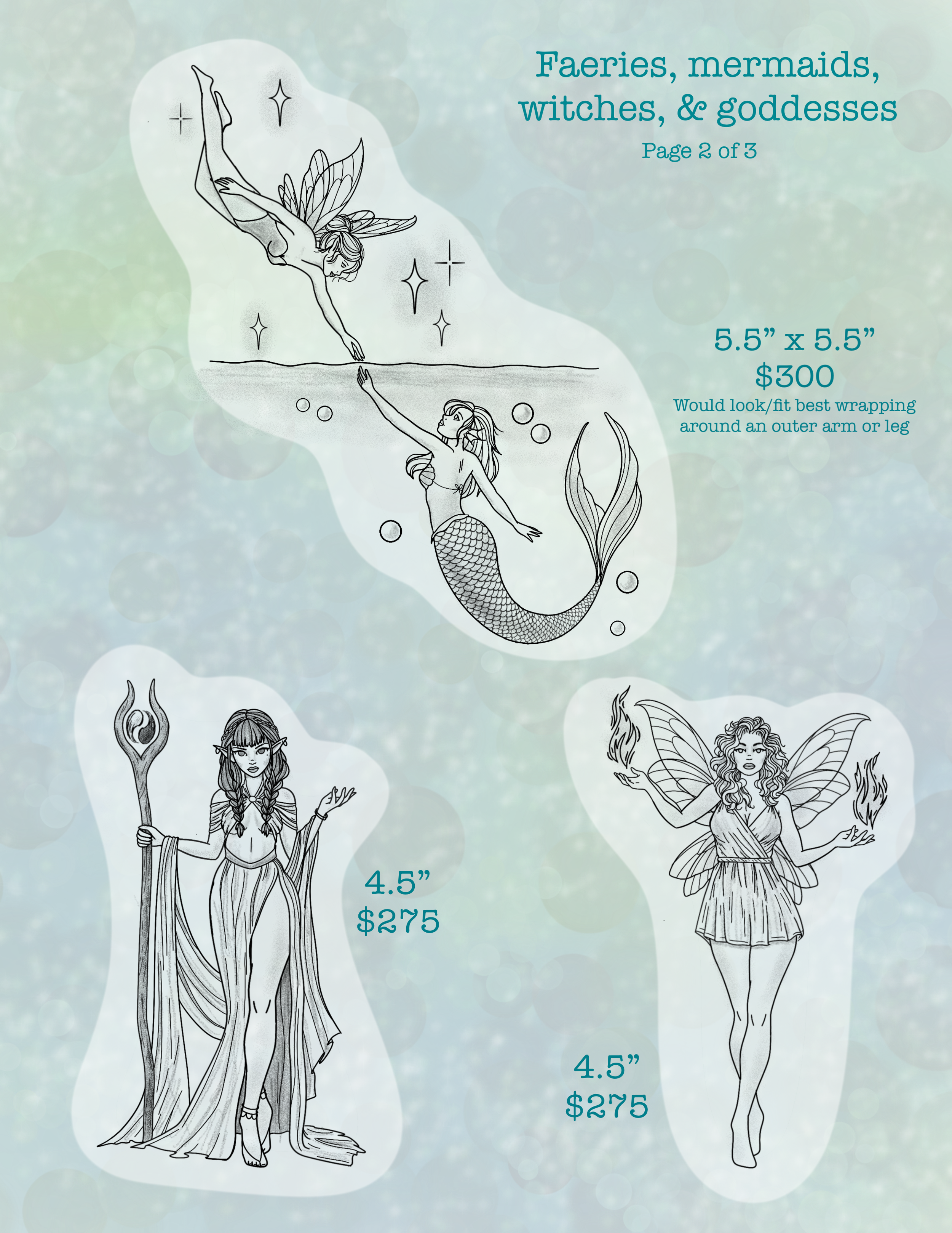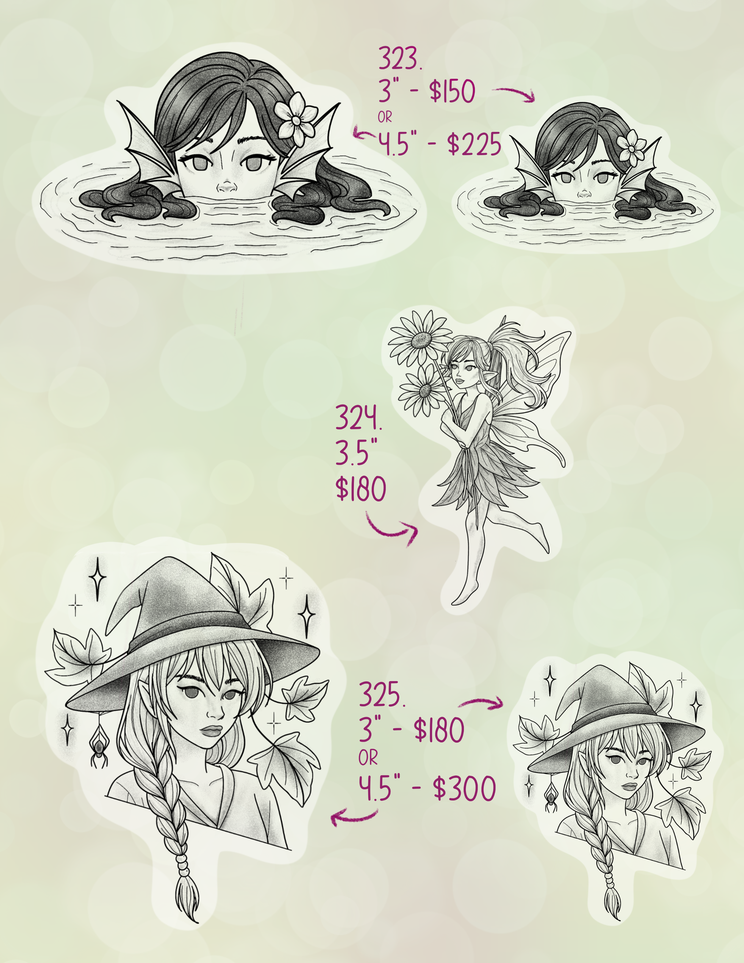 Pricing is based on size & colour. Please email or Instagram DM me if you need to know the specific size of anything if it is not listed. Colour can be added to any black tattoos for an additional cost. Size can also be changed on select designs at an additional cost.